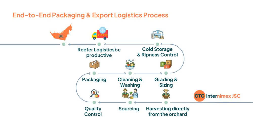 This ensures bananas arrive fresh, green, and ready for controlled ripening upon arrival in the UAE.