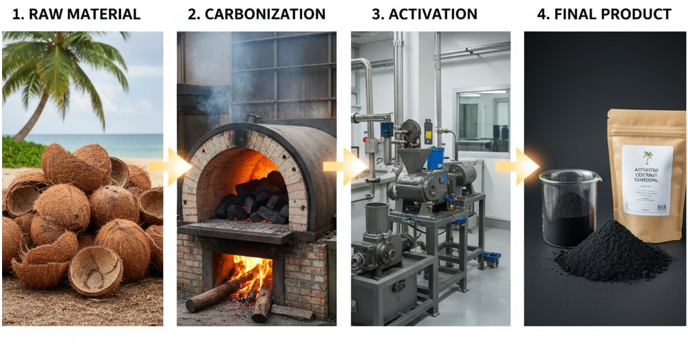 The journey from a simple coconut shell to a powerful activated powder is a technological marvel. The coconut shell charcoal vs activated charcoal is the difference between a raw material and a highly purified product. The process involves two key steps:
